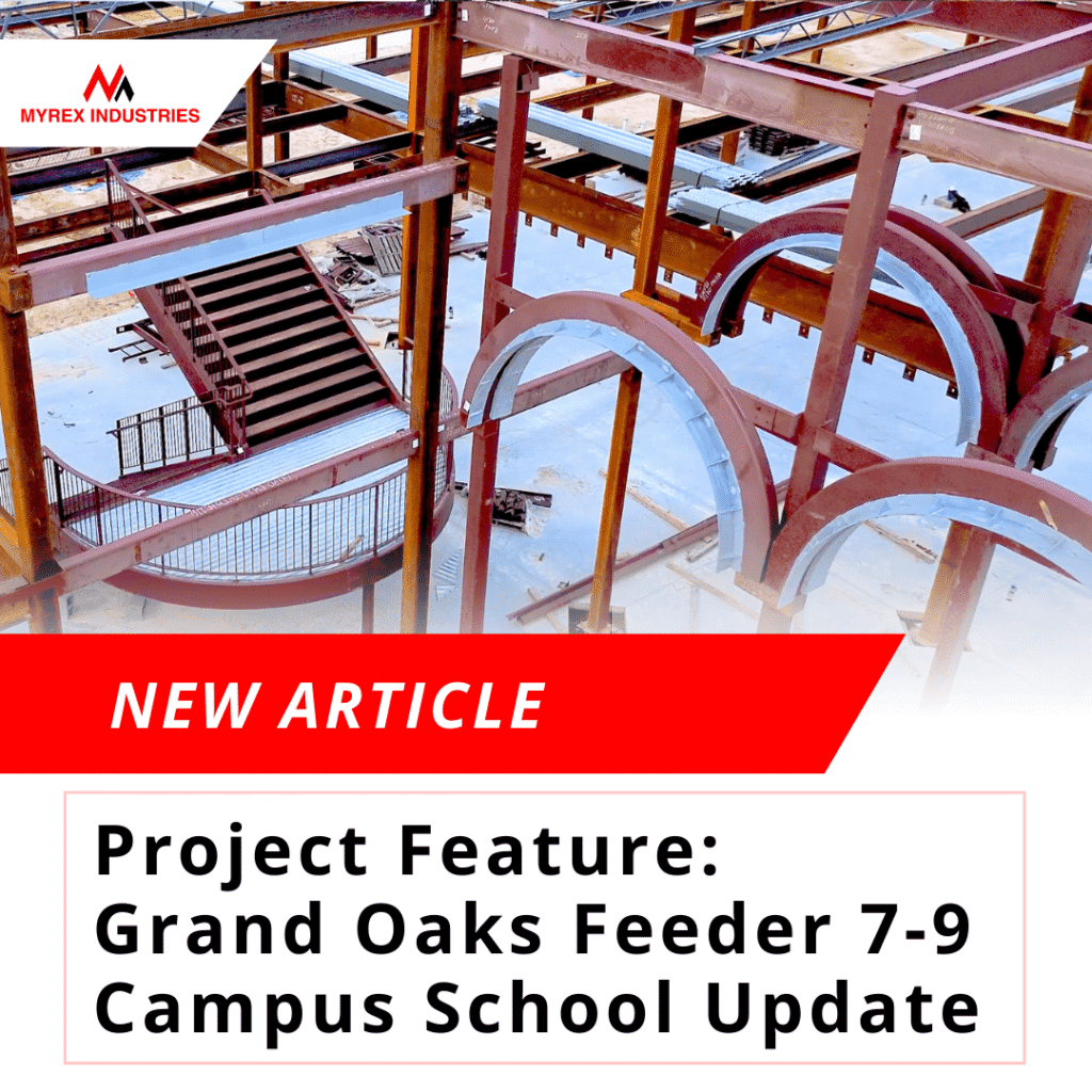 https://youtu.be/k4WSJRJzOuI?feature=shared The Grand Oaks Feeder 7-9 Campus School project is underway and moving forward. More steel supplied by Myrex industries is currently being erected by Gulf Coast Erectors. Above is the project video with new footage starting at 0:58. One of the fastest growing school districts in the state, Conroe ISD, is currently in the […]