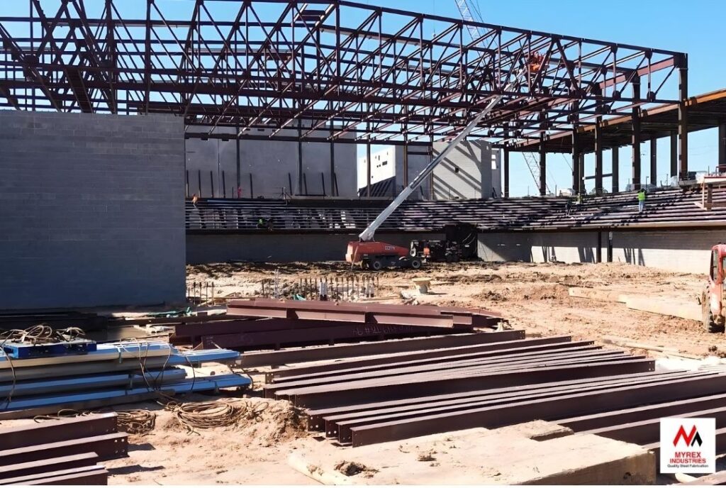 A Houston-area school is in the process of building a new academic facility that will serve the school district for athletics, performing arts, community events, UIL events, and extracurricular competitions. The new multi-use building was part of a bond program that was voted on and passed in 2022. Our team has had the opportunity to work on and fabricate the steel for the new academic facility.